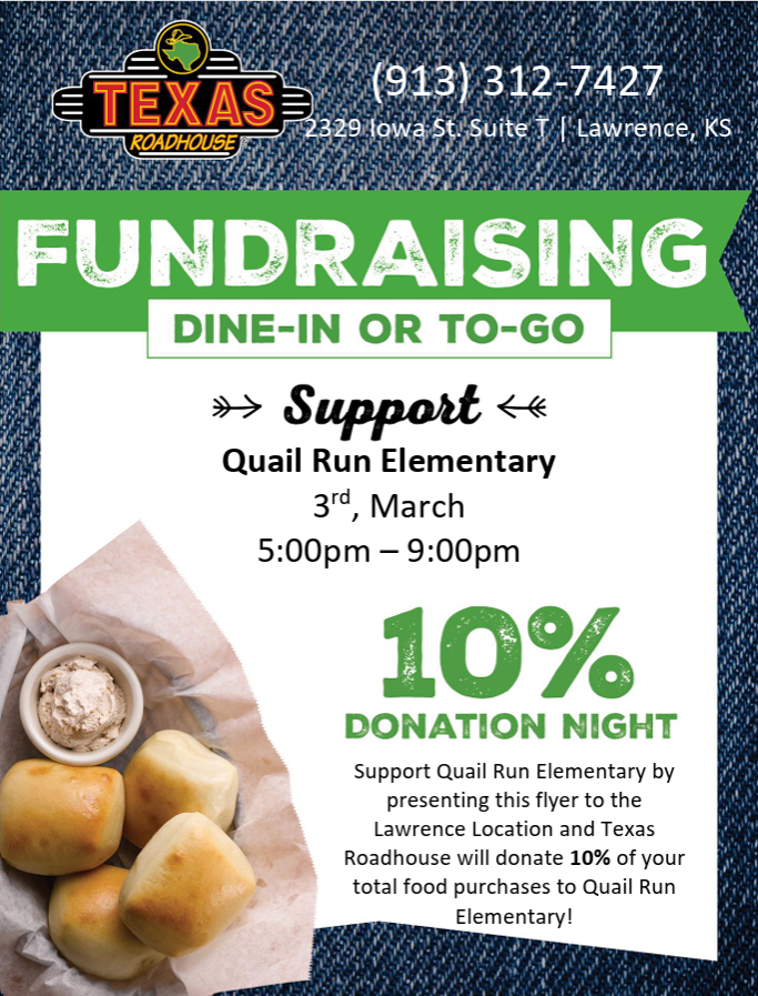 Back to All Events Dine & Donate at Texas Roadhouse Tuesday, March 3, 2026 5:00 PM 9:00 PM Google Calendar ICS
